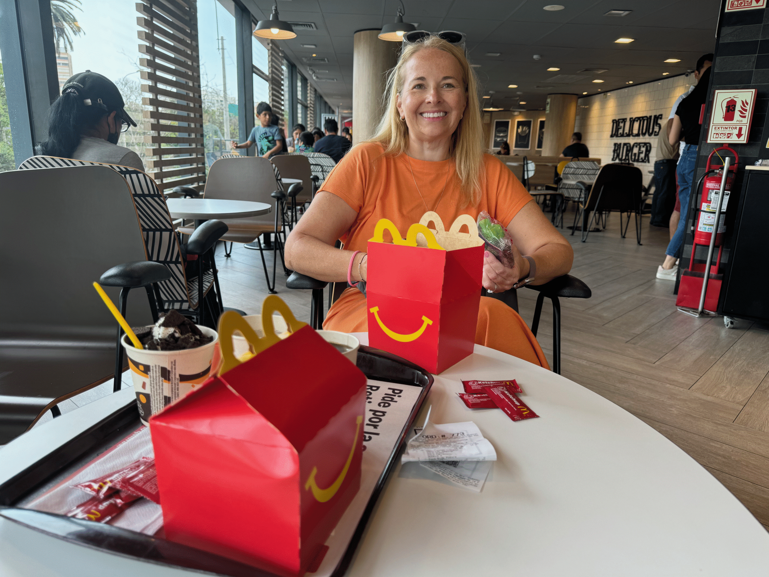 Directly across the street was a McDonald’s, and Amy wondered aloud if it tasted any different in Peru. Naturally, we had to find out. Fries, nuggets, a Quarter Pounder, and two Happy Meals later, the verdict was in: McDonald’s tastes exactly the same, no matter the continent. I attempted to order in Spanish at the counter but eventually surrendered to the touch screens—especially once the girls started making very specific special requests. Ice cream required a separate counter entirely, called the McCafe Dessert Center, just to keep things interesting.